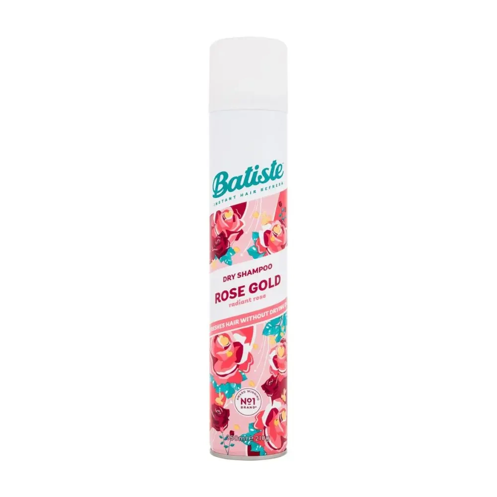 Suchý šampón Batiste Dry Shampoo Rose Gold v limitovanej edícii na absorpciu prebytočného mazu a na osvieženie vlasov. Suchý šampón pohlcuje mastnotu, odstraňuje nečistoty a osviežuje vlasy. Dodáva vlasom energiu a lesk a nezanecháva biele stopy. Navyše má vôňu bergamotu, jazmínu a mandlí s ľahkým vanilkovým záverom. Jednoduchou aplikáciou získate čistý, svieži účes, ktorý má navyše definíciu a objem. Vlasy budú hydratované, mäkšie, hladšie a svieže.