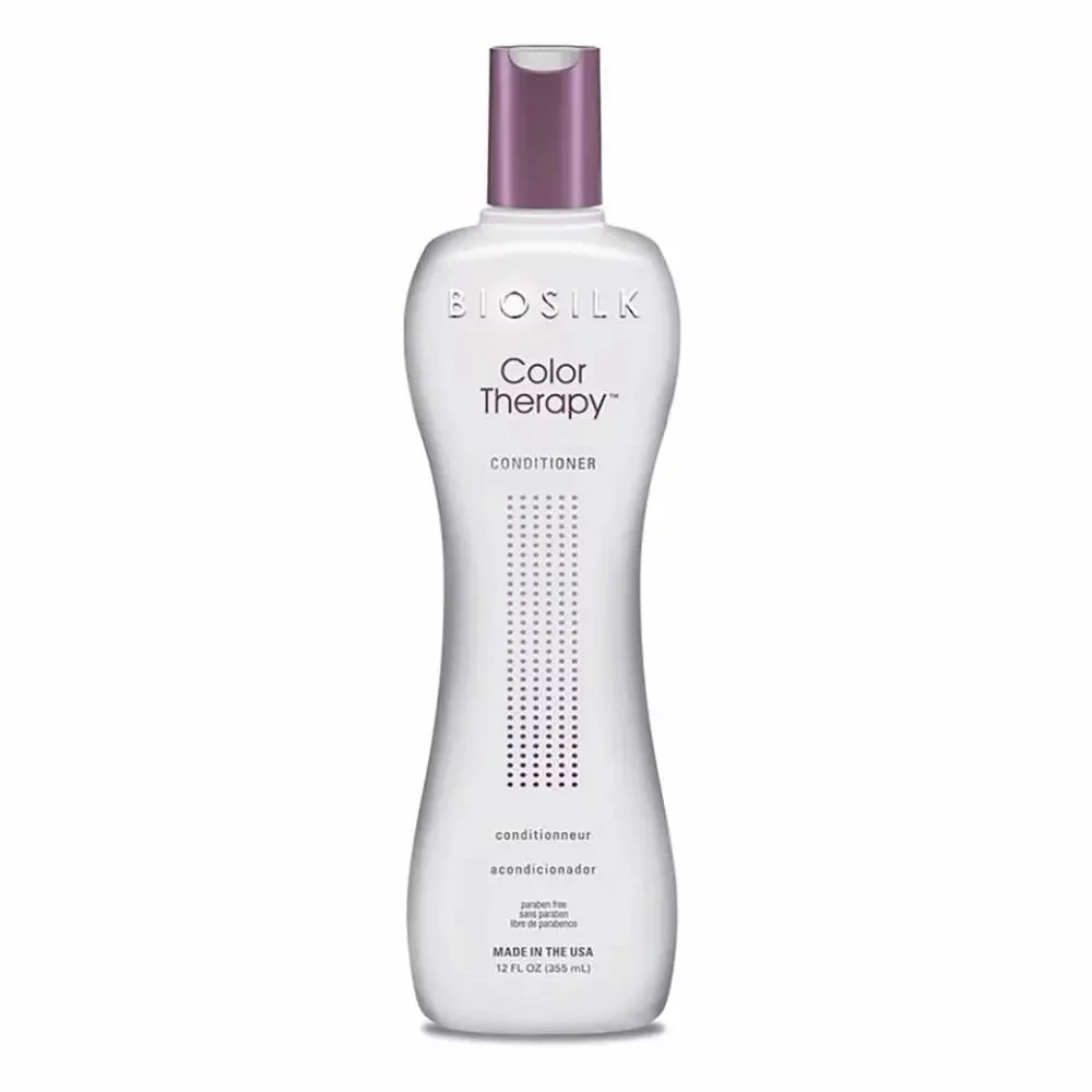 Biosilk Color Therapy Conditioner reguluje vlhkost a chrání barvené vlasy pomocí výtažků z bambusu a angreštu pro ochranu barvy a VibraRiche, který vlasy oživuje a zlepšuje lesk.