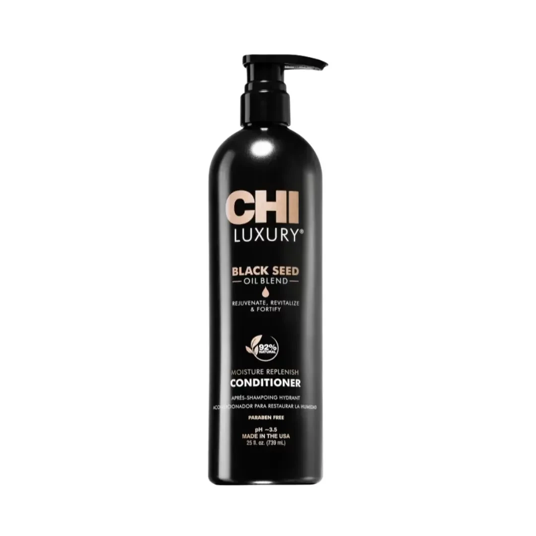 Hydratační kondicionér pro snadné rozčesání vlasů CHI Luxury Black Seed Oil s exotickým olejem z černého kmínu navrací sílu a zdravý vzhled suchým a poškozeným vlasům.
