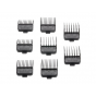 Sada obsahuje více velikostí nástavců (např. od 1,5 mm až po 19 mm), takže umožňuje snadné vytváření přechodů, práci s různými délkami a přesné přizpůsobení střihu podle potřeby.