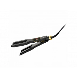 Čtyři odpružené keramicko-turmalínové destičky zajišťují maximálně hladký skluz, rovnoměrný přenos tepla a zároveň pomáhají redukovat krepatění. Vlasy jsou po úpravě hebké, lesklé a přirozeně uhlazené.