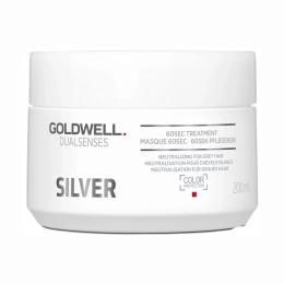 Goldwell Dualsenses Silver 60sec Treatment je ošetrujúca maska pre šedé a chladné blond vlasy. Nežiaduce žlté podtóny sú neutralizované a vlasy sú okamžite regenerované zvnútra. Cool efekty sú rafinované.