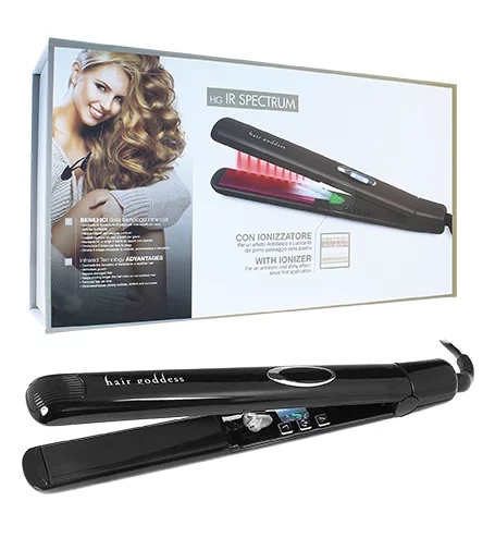 Žehlička na vlasy s infračervenou technológiou as ionizátorom pre antistatický a lesklý efekt už od prvej aplikácie. Vhodná na vytvorenie rovných alebo vlnitých vlasov. Výhody infračervenej technológie: Proti tvorbe baktérií pre zdravšie vlasy Stimuluje rast vlasov Opravuje poškodené vlasy Udržuje dlhšie žiarivú farbu vlasov na neoxidovaných vlasoch Skracuje dobu úpravy vlasov Odstraňuje krepovatenie a uzatvára kutikuly, zmäkčuje a zjemňuje vlasy Parametre: Rozmer dosiek: 1 w) Revolučná technológia s infračerveným žiarením Vďaka infračervenému žiareniu opravuje vlasy a kutikuly a opravuje rozstrapkané končeky Iónový difuzér LCD display pre ľahké čítanie MCH rezistor oveľa rýchlejší Nastaviteľná teplota od 90 °C do 230 °C pohyblivou a flexibilnou konštrukciou Integrované tepelné poistky zaručujú 100% bezpečnosť Dvojité napätie - takže ho môžete používať po celom svete Automatické vypnutie - režim po hodine bez používania Profesionálny 3D kábel otočný o 720 ° - pre zamedzenie zamotania (dĺžka 3 m) Vhodné pre vytvorenie rovných alebo vlnitých vlasov