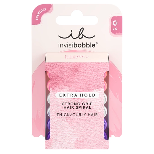 Špirálová gumička Invisibobble Extra Hold s pevným úchopom.S technológiou HAIRLOVETECH™. Ideálna pre husté a kučeravé vlasy, gumička zaisťuje maximálne upevnenie vďaka mimoriadne silnému úchopu a zároveň pohodlne drží na vlasoch. Balenie obsahuje 6ks v niekoľkých farebných prevedeniach.