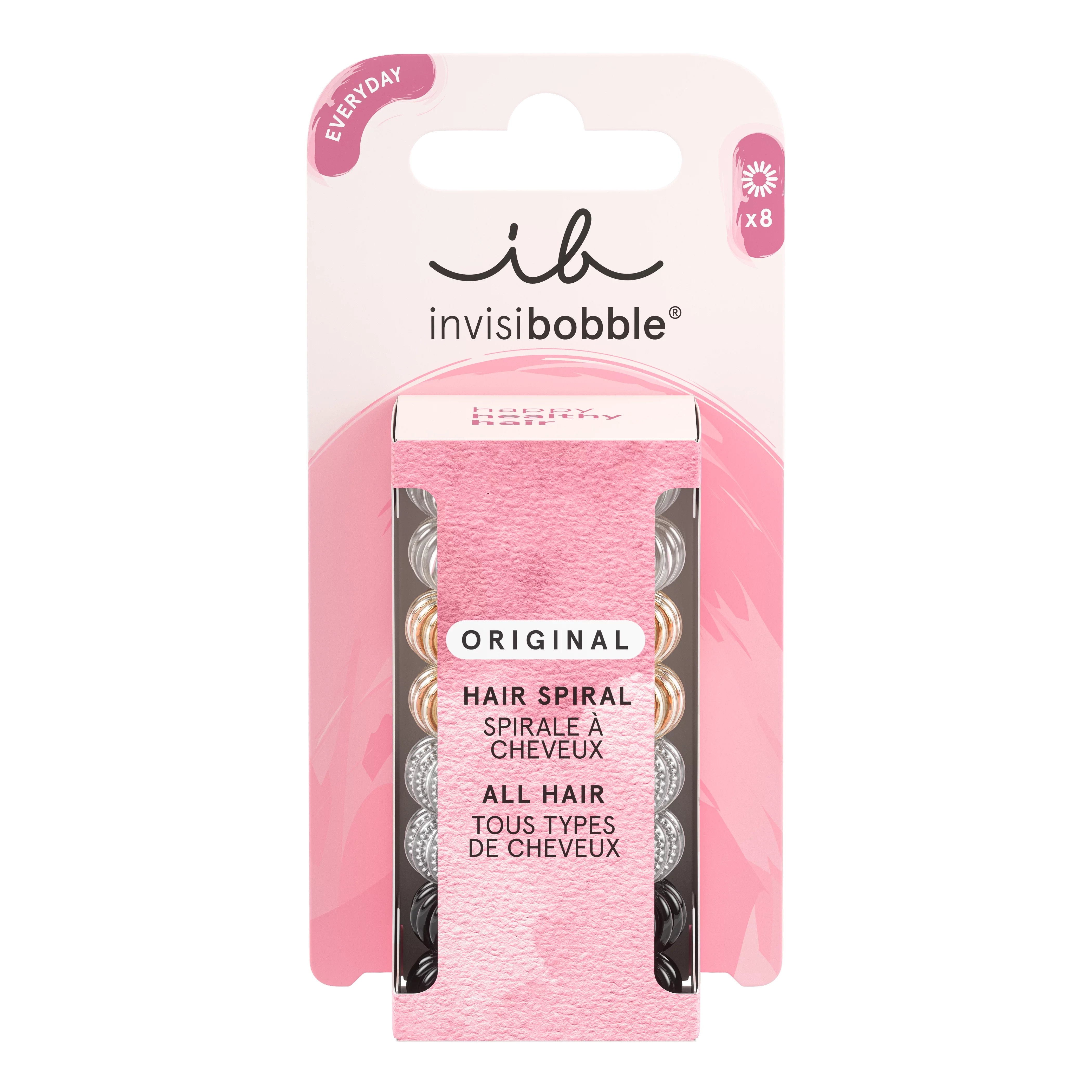 Vlasové gumičky Invisibobble® Original sú vďaka svojmu špirálovitému tvaru ohľaduplné k vlasom, neťahajú, nelámu, nevytvárajú na vlasoch otlak, ani v nich nezanechávajú stopy. Sú hygienické, vodeodolné a vďaka svojmu hladkému povrchu sa nezamotajú do suchých ani do mokrých vlasov. Balenie obsahuje 8ks gumičiek v niekoľkých farebných variantoch.