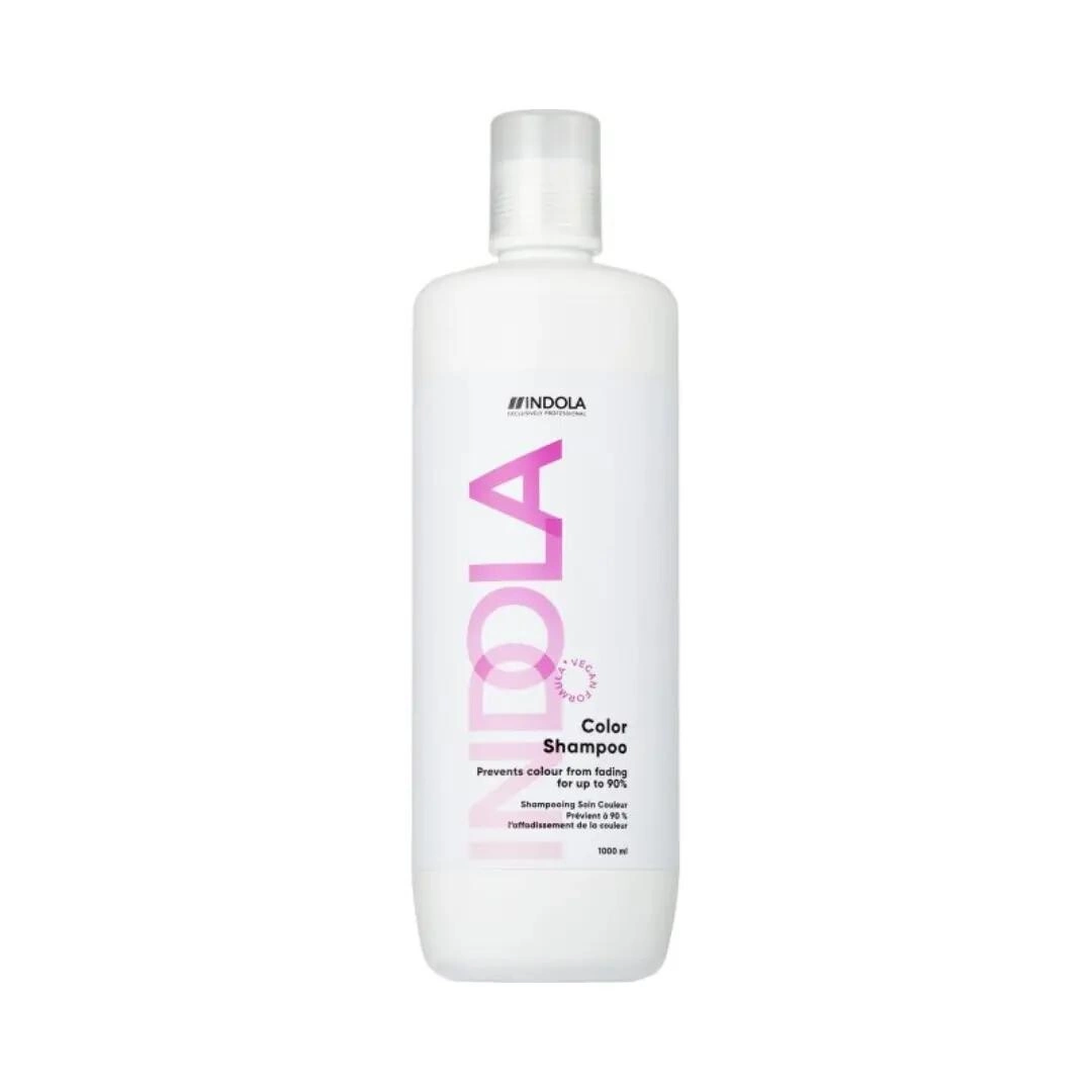 Indola Color Shampoo je profesionální přípravek navržený pro barvené vlasy, jehož formule s pH 4,5 uzamyká barevné pigmenty ve vlasech a výrazně prodlužuje jejich zářivost – až 90 % barvy zůstane stále intenzivní i po 30 umytích. Šetrně čistí, nepřivádí vlasy o přirozenou hydrataci, zároveň jim dodává hedvábný lesk a pružnost díky veganské alternativě keratinu, pantenolu a hedvábným proteinům (Silk Cocoon Proteins).