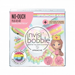 Invisibobble KIDS SLIM SPRUNCHIA w. BOW Let's Chase Rainbows invisibobble SPRUNCHIE, ikona štýlu. S HAIRLOVETECH™, špirálou vo vnútri, zaisťuje maximálne držanie a zároveň je šetrná k vlasom. Pre všetky typy vlasov a všetky štýly. Naša verzia KIDS prichádza s roztomilou mašľou a má krásny dizajn dúhy a sladkostí. Najlepší spôsob, ako premeniť každý deň v deň plný zábavy!
