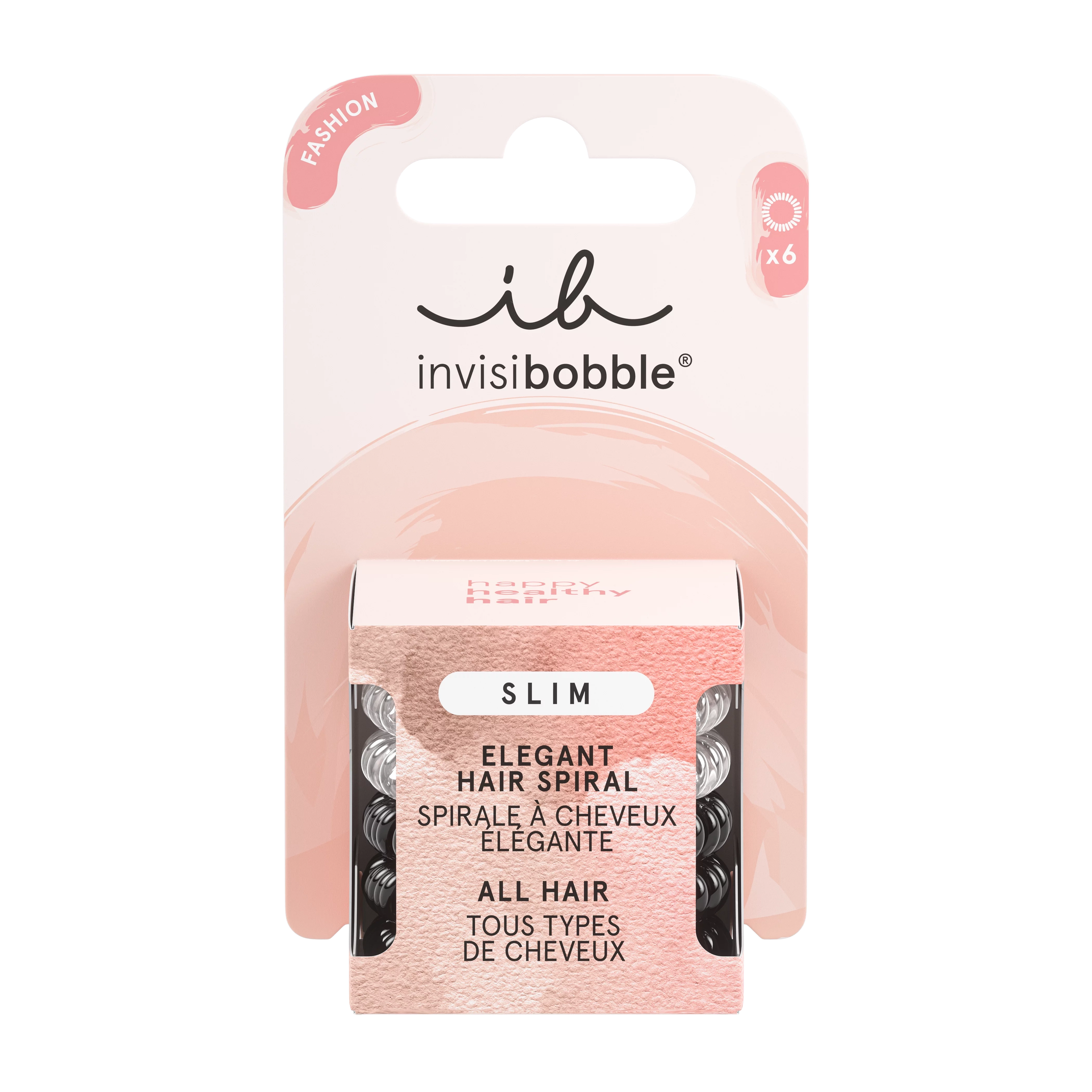 Vlasová gumička Invisibobble® Slim poskytuje pevné a napriek tomu šetrné uchopenie vlasov, pričom jemné špirály zabezpečia maximálne pohodlie a elegantný vzhľad účesu. Dostupných je šesť farebných variantov, ktoré vyzerajú štýlovo aj ako náramok okolo zápästia. K dispozícii je niekoľko farebných verzií.