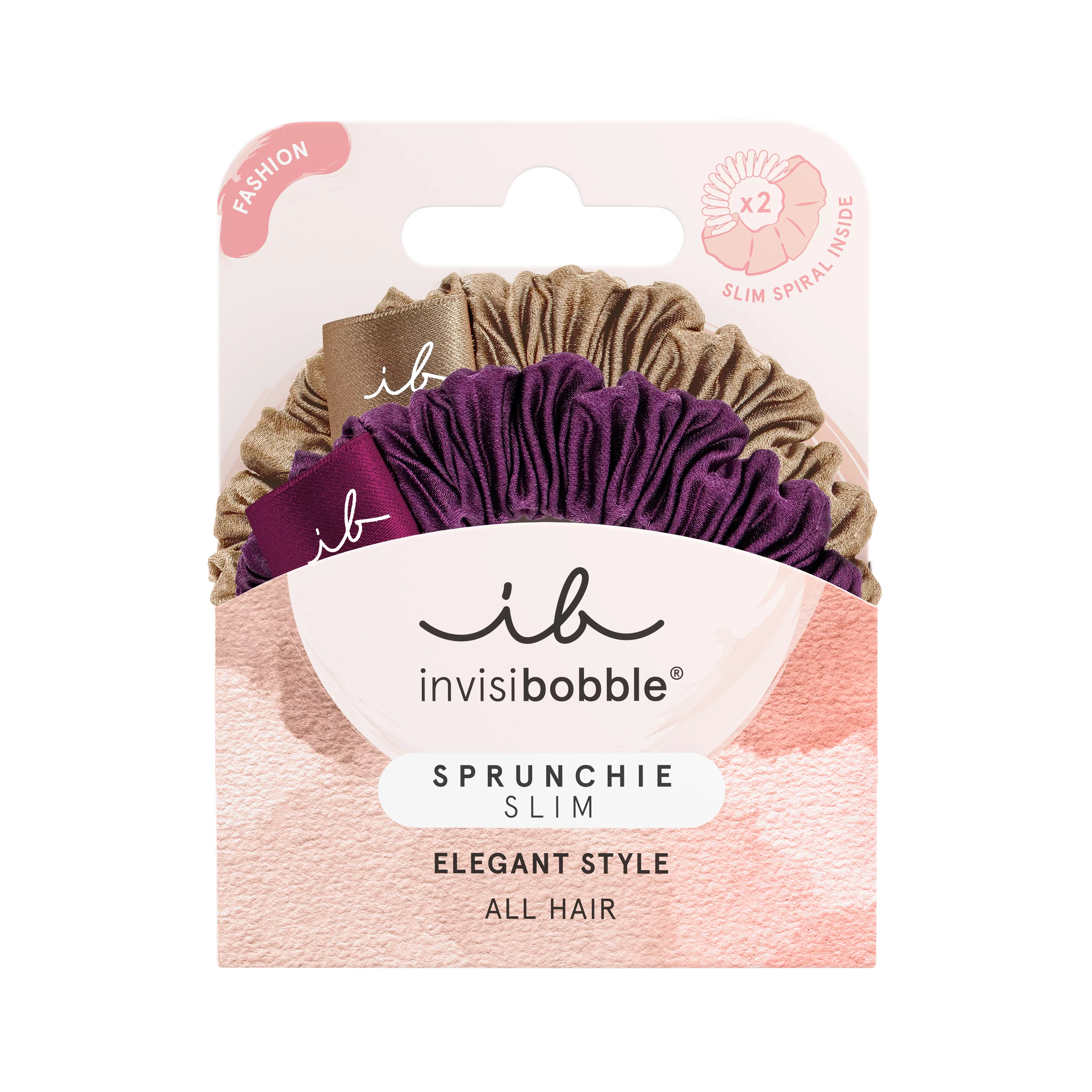 Pohodlná gumička do vlasov Invisibobble® Sprunchie posúva klasickú scrunchie na novú úroveň. Pod luxusnou látkou sa schováva pevná špirála, vďaka ktorej vlasy držia pohromade, nevytvára sa na vlasoch otlak a ani nezanecháva stopy. K dispozícii je viacero farebných variantov.