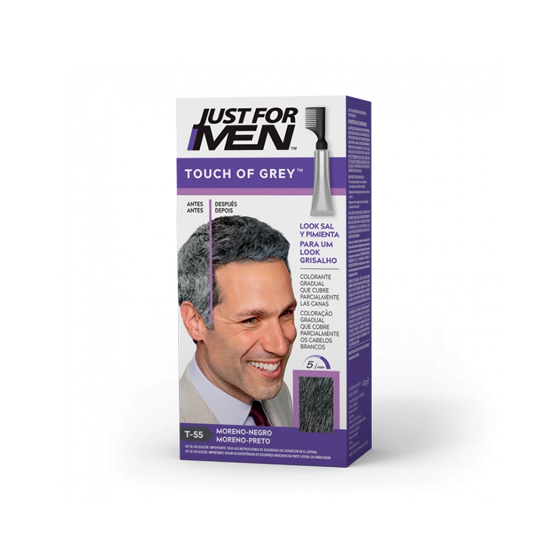 <p>Špeciálna farba na vlasy Just for men Touch of gray T-55 Black poskytuje rýchle prekrytie šedín bez potreby farbenia celých vlasov, ak sa šediny vyskytujú len na niektorých miestach hlavy.</p><ul><li>Rýchle prekrytie šedín </li><li>Bez potreby farbenia celých vlasov</li><li>Prirodzený vzhľad </li><li>Komfortné zloženie pre pokožku hlavy</li><li>Praktická aplikácia farby</li></ul><p></p><p><b>Použitie</b>: Postupujte podľa návodu v balení. </p><div><br></div><p><b>Upozornenie: </b>Pred použitím sa odporúča vykonať test kožnej znášanlivosti. Zabráňte styku s očami. Ak sa výrobok dostane do očí, vypláchnite ich dôkladne vodou. Len na vonkajšie použitie. Uchovávajte mimo dosahu detí a ohňa.</p><p><br></p><p><b>Zloženie produktu:</b></p><p>Voda, kokosový glukozid, aminometylpropanol, izopropylalkohol, karbomér, izopropylacetát, vôňa, trisodná soľ edta, 2-metyl-5-hydroxyetylaminofenol, 1,2,4 trihydroxybenzén, P fenyléndiamín, kyselina erytorbová, aminometylpropanolsulfát P-aminofenol, N,N-bis(2-hydroxyetyl)-P-fenyléndiamínsulfát, cinnamidopropyltrimoniumchlorid.</p>