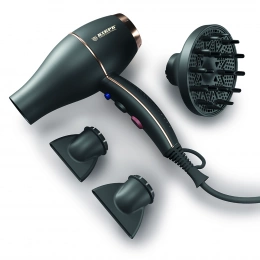 KIEPE PROFESIONÁLNÍ FÉN BLOOM černý - s iontovou generací a keramikou k sušení a úpravě vlasů. Tento fén je ideální zařízení pro péči o vlasy. Výkon 2000 wattů tohoto fénu vám umožní rychle a efektivně vysušit vlasy, což výrazně snižuje čas potřebný k sušení. Jednou z nejvíce oceňovaných vlastností vysoušeče vlasů BLOOM je možnost nastavení rychlosti a teploty vzduchu podle potřeb vlasů. Rychlost vzduchu lze nastavit podle hustoty vlasů a jejich délky, zatímco teplota vzduchu může být nastavena tak, aby nedošlo k poškození vlasů. Výběr správné teploty a rychlosti vzduchu je nezbytný pro dosažení požadovaných výsledků bez poškození vlasů. Fén je dodáván se dvěma koncentrovanými tryskami (jednou širokou a jednou úzkou) a difuzorem, který se přizpůsobí různým potřebám vlasů. Úzká koncentrovaná tryska je ideální pro vytvoření přesného vlasového záhybu, zatímco širší je ideální pro sušení většího povrchu vlasů. Difuzér je užitečný pro vytvoření přirozeného efektu na kudrnaté vlasy. Kromě toho je iontová technologie dalším klíčovým prvkem. Díky iontové technologii je tento nástroj schopen emitovat záporné ionty, které pomáhají snižovat krepatění a eliminovat statickou elektřinu z vlasů. Tato technologie je zvláště užitečná pro ty, kteří mají kudrnaté nebo statické elektrické vlasy. Keramická technologie je dalším důležitým prvkem vysoušeče vlasů BLOOM. Tato technologie rovnoměrně rozděluje teplo na vlasy a chrání je před poškozením způsobeným nadměrným teplem. To znamená, že vysoušeč vlasů lze použít k jemnému vysoušení vlasů a k vytváření účesů bez poškození. Vysoušeč vlasů BLOOM je dodáván v praktickém balení s brašnou na přenášení.