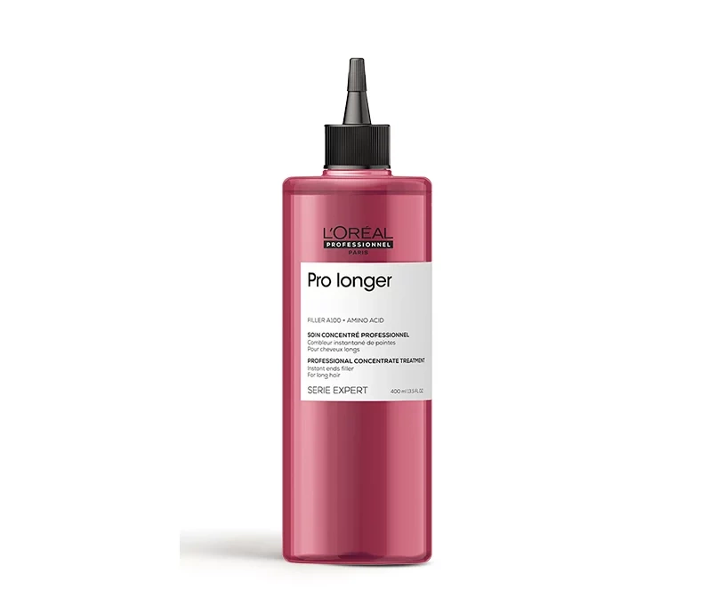 Ošetrenie Pre Longer Concentrate pomáha posilniť vaše dlhé vlasy, ktoré sú po aplikácii viditeľne zdravšie a silnejšie. Pri použití spolu so šampónom Pro Longer na dlhé vlasy, pomáha znížiť poškodenie vlasov a redukuje lámavosť až o 94%. Vlasy sú až 5-krát lesklejšie. Použitá technológia Filler A-100 je patentovaná L'Oréal Professionnel a funguje tak, že preniká do jadra vlasov, aby boli plnšie a posilnené zvnútra. Funguje na jemných koncoch alebo v oblastiach, kde je najviac potrebné.