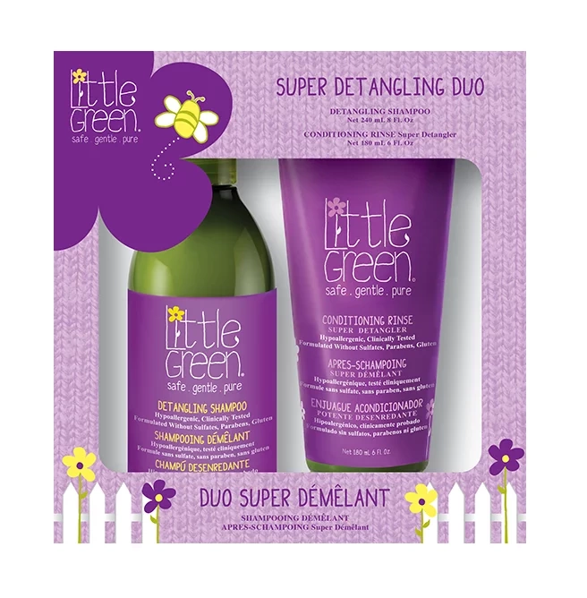Darčeková sada Little Green Kids Super Detangling Duo pre ľahké rozčesávanie detských vláskov bez ťahania.