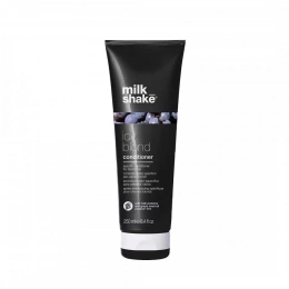 Milk_shake Icy Blond Conditioner je profesionální kondicionér určený pro velmi světlé, platinové nebo zesvětlené blond vlasy. Jeho jedinečné složení s černým pigmentem neutralizuje nežádoucí žluté či mosazné tóny a dodává vlasům chladný, popelavý nebo stříbrný odstín. Kondicionér přináší jemnost, hebkost a lesk, pomáhá udržet svěží chladný tón blond vlasů a chrání jejich barvu.