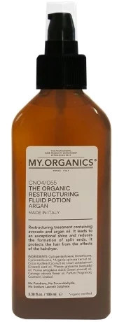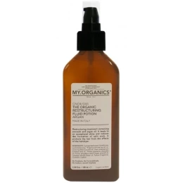 Vlasový elixír na rekonštrukciu MY.ORGANICS The Organic Restructuring Fluid Potion Argan obsahujúci avokádo a arganový olej. Dodáva mimoriadnu žiarivosť a pomáha predchádzať štiepeniu končekov. Chráni vlasy pred účinkami horúceho vzduchu pri fénovaní. Vynikajúci aj ako masážny olej.