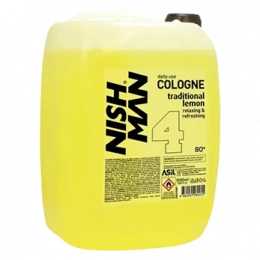 <p><b>NishMan After Shave Cologne 4 Lemon</b> - tradičná citrusová kolínska voda s obsahom 80% alkoholu, ktorá osviežuje, dezinfikuje a prináša pokožke sviežosť po každom holení. Jej energická vôňa citróna s jemnými tónmi pomarančového kvetu a ruže pretrváva počas celého dňa.</p><p><b>Vôňa:</b> svieža citrusová aróma citróna s jemnými kvetinovými tónmi</p><p><b>Hlavné vlastnosti:</b></p><ul><li>Vhodná pre všetky typy pleti</li><li>Upokojuje a osviežuje pokožku</li><li>80% alkohol pre účinnú dezinfekciu a prevenciu proti baktériám</li><li>Dlhodobo pretrvávajúca vôňa</li><li>Praktické balenie 5000 ml - ideálne pre profesionálne použitie v salónoch</li><li>Tonizuje, vyrovnáva hydratáciu a urýchľuje hojenie drobných poranení</li></ul><p><b>Použitie: </b>Naneste malé množstvo na čistú pokožku po holení alebo kedykoľvek počas dňa na osvieženie.</p><p><b>Upozornenie: </b>Len na vonkajšie použitie. Uchovávajte mimo dosahu detí a ohňa. Zabráňte kontaktu s očami. Pri podráždení prestaňte používať.</p>