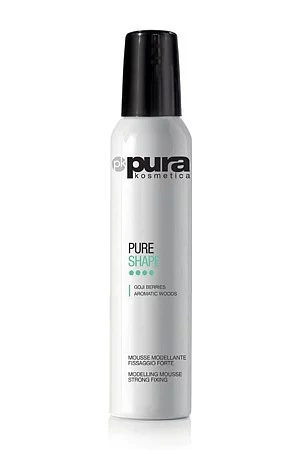 PURA KOSMETICA PURE SHAPE MOUSSE - modelační pěna. Ideální pro všechny typy vlasů, tvaruje a definuje vlasy, vhodná pro účesy, které vyžadují silné držení. Dodává vlasům objem a lesk. Obsahuje extrakt z bobulí Goji, tím chrání vlas před UV zářením.