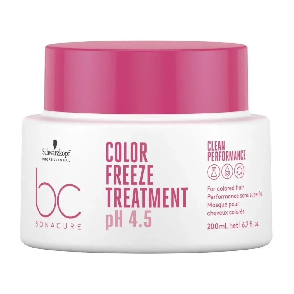 Schwarzkopf BC Bonacure Color Freeze Treatment je krémová maska na farbené vlasy. Intenzívne obnovuje a regeneruje vlasy. Vegánske zloženie navracia vlasom optimálnu hodnotu pH 4,5 a chráni farbu vlasov pred vyblednutím. Bez silikónov a umelých farbív.