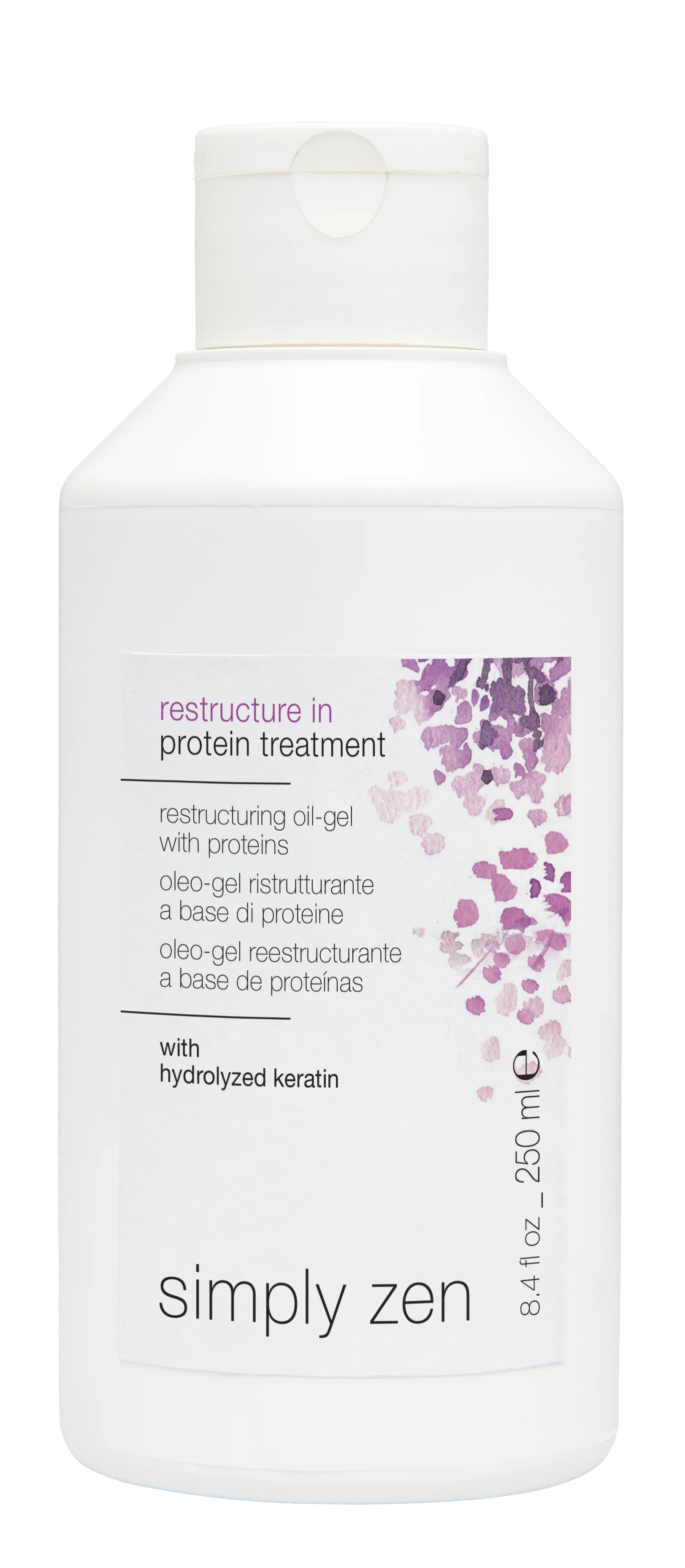 Simply Zen Restructure In Protein Treatment je intenzivní profesionální proteinová kúra, která představuje první a zásadní krok hloubkové regenerační služby Restructure In. Je navržena pro vlasy, které jsou strukturálně oslabené, lámavé, suché nebo poškozené chemickými a mechanickými zásahy. Kúra působí přímo uvnitř vlasového vlákna, kde doplňuje chybějící stavební složky a obnovuje jeho pevnost, pružnost a odolnost.