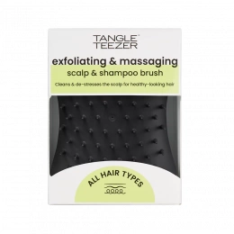 Masážní exfoliační kartáč na pokožku hlavy, černý.