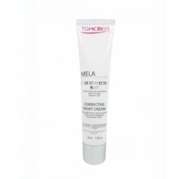 Topicrem MELA Jemný noční peelingový krém působí během noci na redukci pigmentových skvrn a sjednocení tónu pleti. Díky obsahu exfoliačních a rozjasňujících složek jemně odstraňuje odumřelé kožní buňky, podporuje obnovu pleti a zanechává ji hladší, jasnější a svěžejší. Lehká textura se rychle vstřebává a poskytuje intenzivní hydrataci po celou noc. Vhodný pro všechny typy pleti, včetně citlivé.