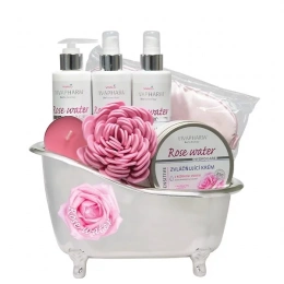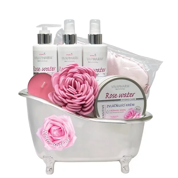Darčekové balenie starostlivosti s ružovou vodou vám zaistí dlhodobú hydratáciu a výživu pokožky celého tela. Kozmetika s vysokým obsahom hydrolátu z damascénskej ruže, zvláčňujúcich rastlinných olejov a vitamínu E je určená na každodenné osvieženie a hydratáciu pleti. Ľahko sa vstrebáva, nezanecháva pocit mastnoty. Má príjemnú jemnú vôňu.