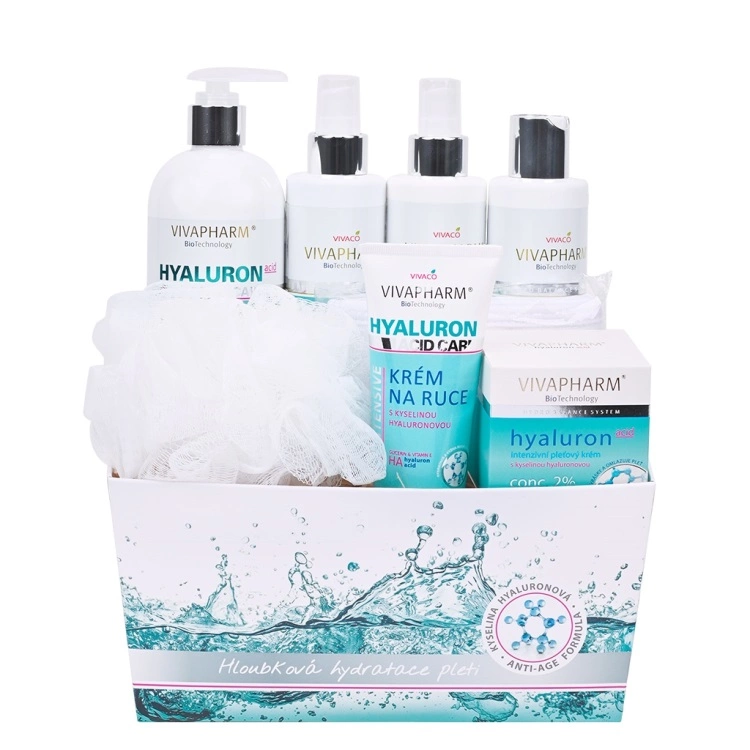 Dárkové balení hydratační péče s kyselinou hyaluronovou zajišťující omlazení a hydrataci pleti a pokožky. Obsahuje nízkomolekulární kyselinu hyaluronovou, která se nazývá molekula mládí, pro svou přirozenou schopnost zachovávat v pleti optimální stupeň hydratace. Kyselina hyaluronová napomáhá udržovat pokožku pevnou, váže na sebe vodu a tím pomáhá vyhlazovat vrásky a drobné linky, urychluje obnovu tkáně, pleť regeneruje a vypíná.