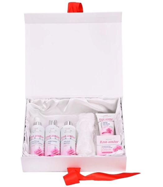 Luxusní balení hydratační péče s růžovou vodou v dárkovém boxu. Darujte krásu a mládí.
