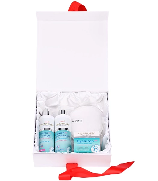 Luxusní balení hydratační péče s kyselinou hyaluronovou v dárkovém boxu. Darujte krásu a mládí.