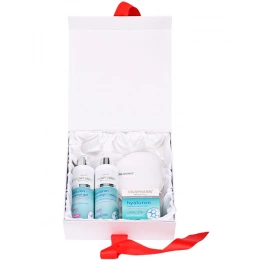 Dárkové balení hydratační péče s kyselinou hyaluronovou zajišťující omlazení a hydrataci pleti a pokožky. Obsahuje nízkomolekulární kyselinu hyaluronovou, která se nazývá molekula mládí, pro svou přirozenou schopnost zachovávat v pleti optimální stupeň hydratace. Kyselina hyaluronová napomáhá udržovat pokožku pevnou, váže na sebe vodu a tím pomáhá vyhlazovat vrásky a drobné linky, urychluje obnovu tkáně, pleť regeneruje a vypíná.