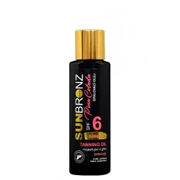 Opalovací olej SPF 6 s třpytivým efektem pro intenzivní zhnědnutí pokožky a zvýraznění bronzového tónu opálení.