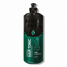<p><b>NishMan Hair Tonic 1 Chilly</b> podporuje vlasovú štruktúru a má stimulačný účinok na vlasové folikuly. Pomáha zlepšiť krvný obeh, pôsobí upokojujúco a je určené aj ako podpora pri probléme s vypadávaním vlasov.</p><p><b>Vôňa:</b> chladivý eukalyptus</p><p><b>Hlavné vlastnosti:</b></p><ul><li>Obnovuje vlasovú štruktúru</li><li>Stimuluje vlasové folikuly</li><li>Špeciálna receptúra zameraná na podporu pri vypadávaní vlasov</li><li>Zlepšuje krvný obeh pokožky hlavy</li><li>Má upokojujúce účinky</li><li>Pri pravidelnom používaní podporuje vyživený a zdravší vzhľad vlasov</li><li>Chladivý efekt s eukalyptovým charakterom</li></ul><p><b>Použitie: </b>Naneste potrebné množstvo na umyté vlhké vlasy a pokožku hlavy a jemne vmasírujte. Pre trvalejšie výsledky sa odporúča používať po každom umytí vlasov počas 2–3 mesiacov.</p><p><b>Upozornenie: </b>Len na vonkajšie použitie. Vyhnite sa kontaktu s očami. Pri zasiahnutí očí dôkladne vypláchnite vodou. V prípade podráždenia prestaňte používať. Uchovávajte mimo dosahu detí.</p>