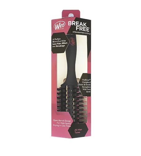 Okrúhla kefa BreakFree™ Straighten & Style prináša najrýchlejší spôsob, ako dosiahnuť hladké, elegantné vyfúkanie s menšou bolesťou, námahou a lámaním. Jedinečný dizajn otvoreného barelu umožňuje ďalšie prúdenie vzduchu, čo zrýchľuje dobu stylingu. Keramický valec napustený komplexom VitaBoost™ z biotínu a keratínu pomáha posilniť vlasy pri každom ťahu. Štetiny HeatFlex™ zaisťujú ľahké a bezbolestné rozčesávanie pri stylingu. Ultra mäkké nylonové štetiny vyhladzujú kutikulu a zvyšujú lesk bez ťahania a zadrhávania.